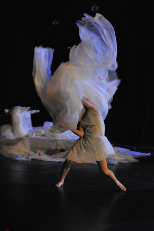 Dans la boîte noire du théâtre s’invite un étrange royaume blanc dans lequel une reine surmenée et ses suivantes malicieuses étouffent dans un écrin de plastique bulle. En cachette et avec maladresse, les princesses s’emmêlent dans leurs désirs gourmands d’être et de paraître.